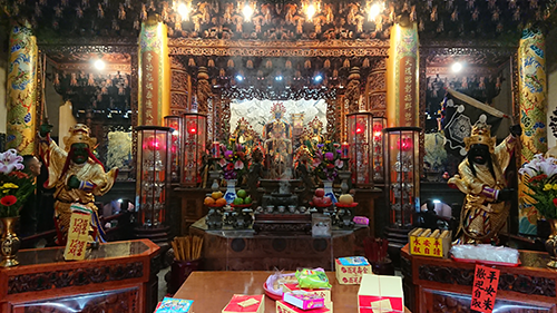 開基共善堂拜殿,從左至右分別為白劍將軍、邢府千歲、黑旗將軍(張小瑛拍攝,2020)
